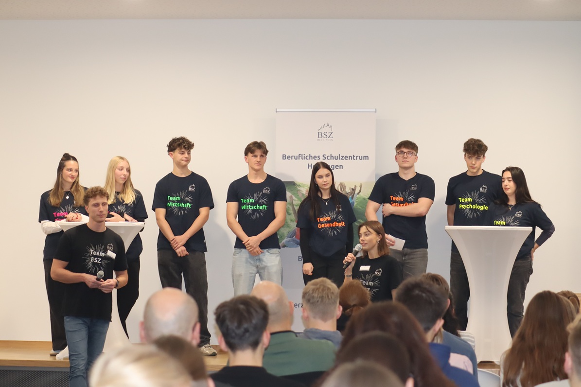 Kein Sitzplatz war mehr frei, als das Berufliche Schulzentrum Hechingen (BSZ) zum Tag des Beruflichen Gymnasiums geladen hatte. An die zweihundert Schülerinnen und Schüler, meist samt mindestens einem Elternteil, kamen ins neue Foyer am Schlossberg. Schulleiter Arndt Bayer sowie die Moderatoren des Abends, Lisa Wolf und Jonas Preiß, begrüßten die Gäste und freuten sich sichtlich über das große Interesse.