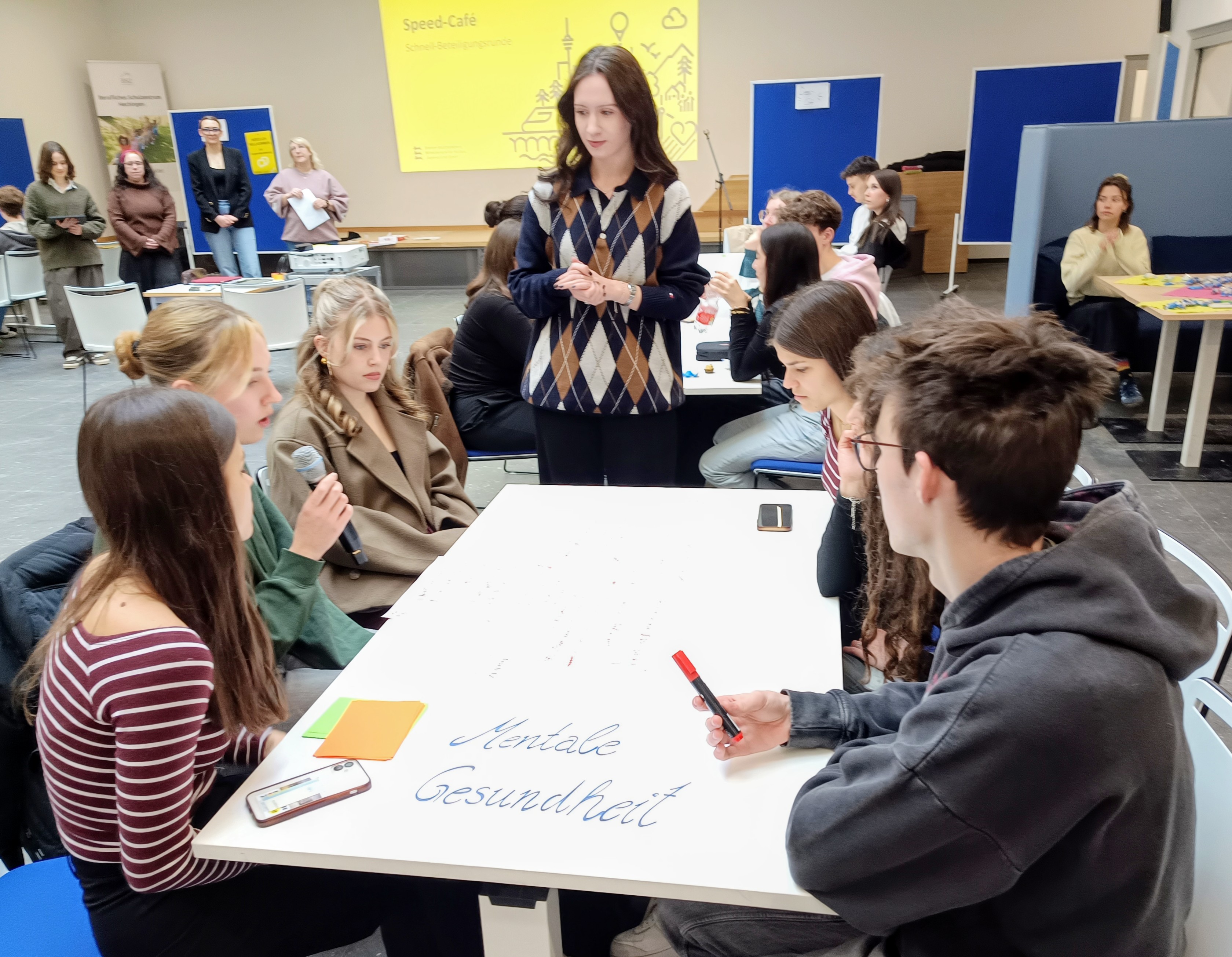 Unter dem Motto „Deine Stimme zählt“ stand die erste Jugendkonferenz am Beruflichen Schulzentrum Hechingen. Hierbei ergab sich für Schüler und Schülerinnen verschiedener Schularten die Möglichkeit, sich über Anregungen und Wünsche an die Politik auszutauschen. Unter Leitung eines Moderationsteams aus fünf Schülerinnen durchliefen die Teilnehmenden verschiedene Thementische, an welchen rege diskutiert wurde. Themen wie Sicherheit und Frieden, mentale Gesundheit oder Gleichberechtigung waren den Jugendlichen dabei besonders wichtig. Die erarbeiteten Forderungen werden bei der Landesjugendkonferenz im kommenden Sommer dem Landtag vorgestellt. Die Teilnehmenden verließen die Konferenz mit dem Denkanstoß, dass sie nur etwas bewirken können, wenn sie aktiv werden und ihre Stimme nutzen. Schulleiter Arndt Bayer freute insbesondere mit Blick auf die nahenden Landtagswahlen über die hohe Beteiligung und das große Engagement der Jugendlichen. Er lobte die Jugendkonferenz als einen wichtigen Schritt zu mehr Teilnahme der Schülerschaft am politischen Geschehen.